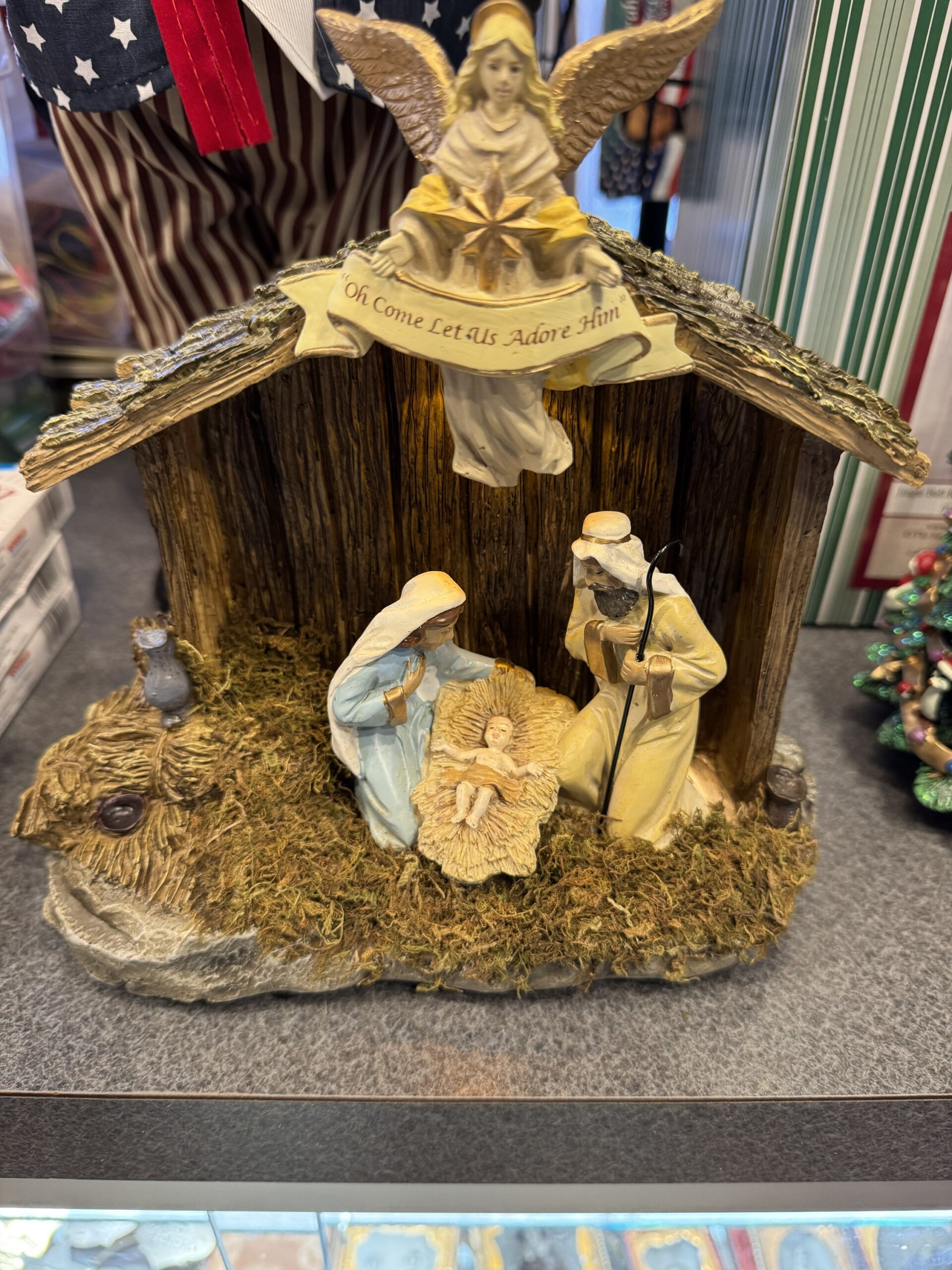 Measuring at 8 inches in height, 4 inches in depth, and 7 inches in width, this Nativity Stable offers a compact yet impactful presence. Crafted from durable resin, the ornament boasts lifelike and intricate detailing, showcasing the Holy Family in all its glory. At its heart, you will find the angel, Joseph, Mary, and the baby Jesus nestled in a humble manger, a scene that has inspired generations with its profound significance.