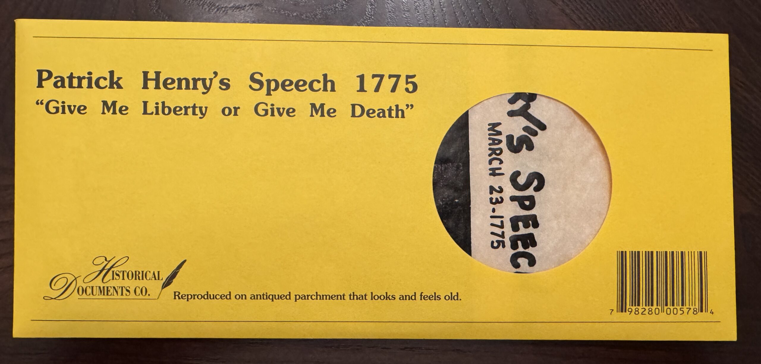 Pictorial with excerpts of his Speech to the Virginia Assembly – “Give Me Liberty, or Give Me Death!”