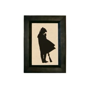 Enhance and decorate your home with these handmade, one-of-a-kind, wall art hanging. Quality materials and hand craftsmanship! This silhouette is behind glass in a 5-1/2″ x 7-1/2″” black, solid distressed wood frame. A saw tooth picture hanger is attached to the back.