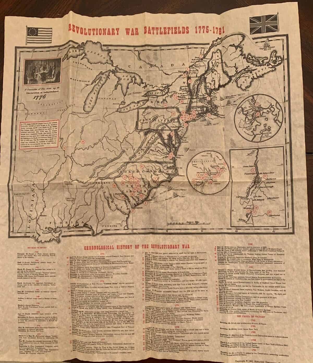 Revolutionary War Battlefield Map 1775-1781 Replica 13.5″x16″