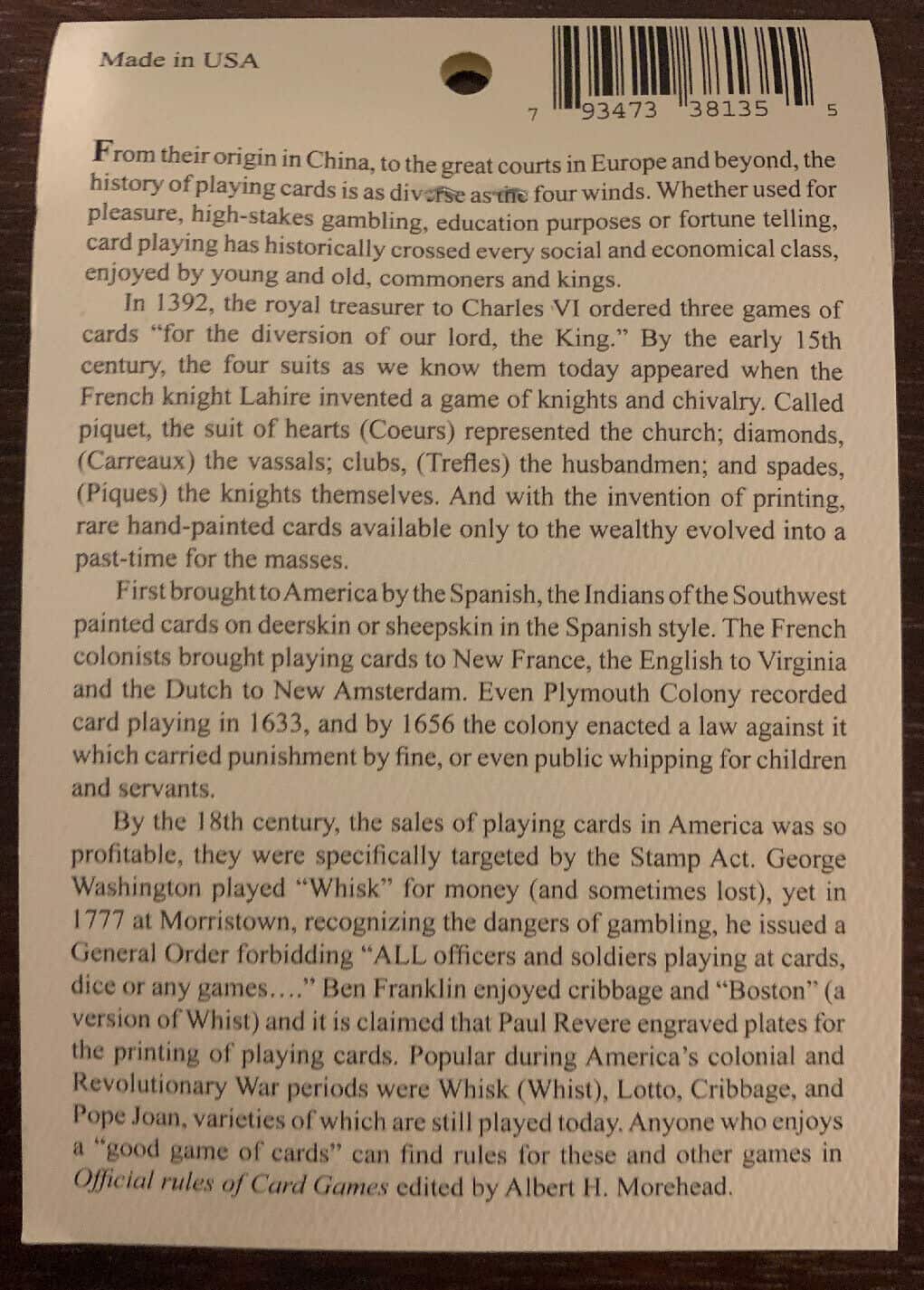 Revolutionary War Colonial Period Playing Cards