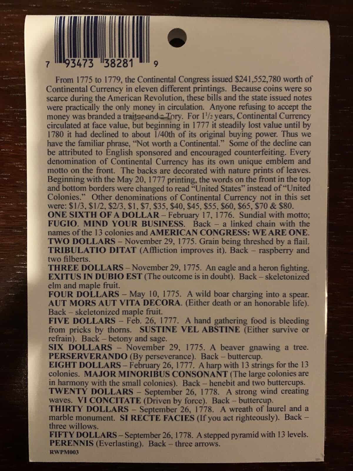 Revolutionary War Replica Currency