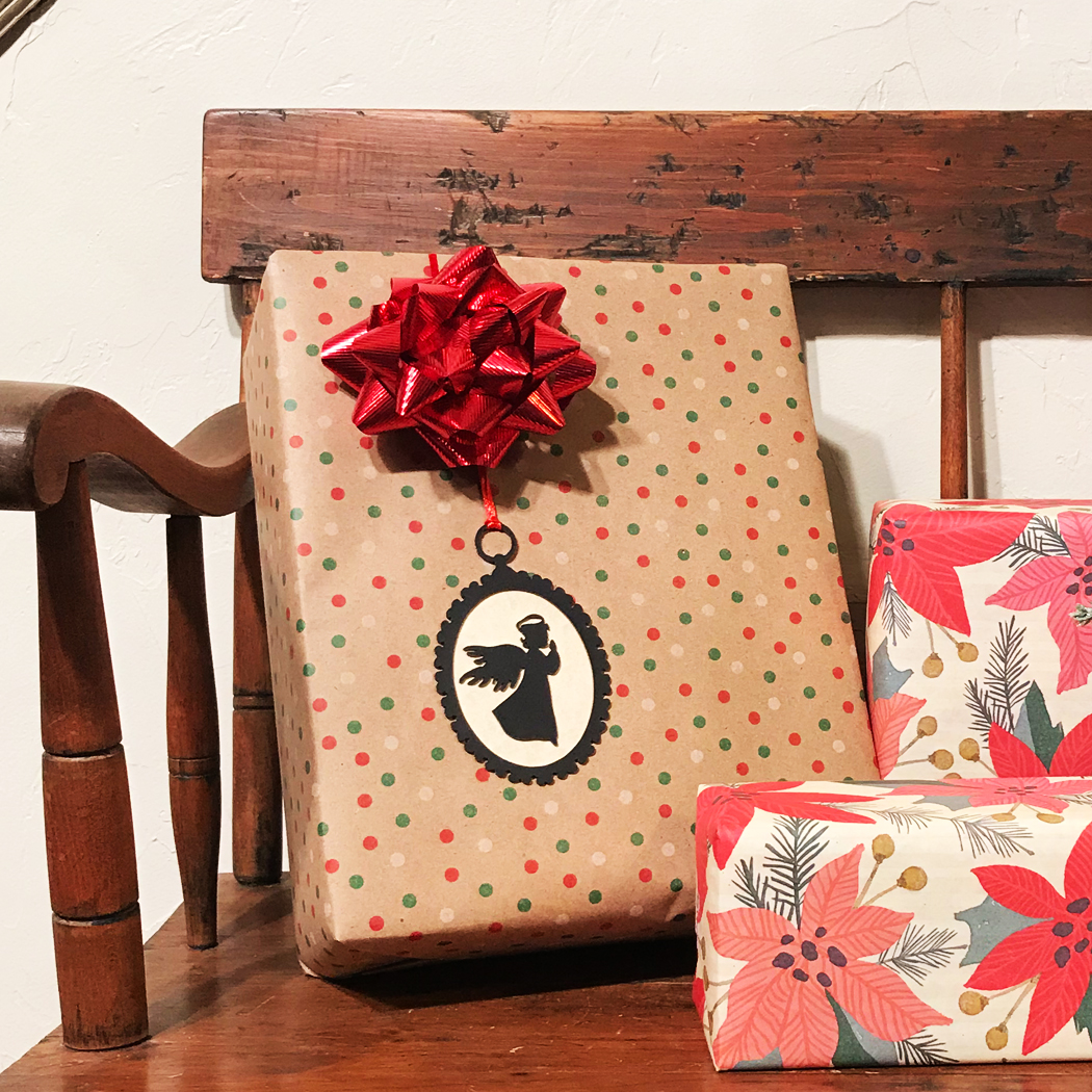 Set of 5 Christmas Silhouette Ornaments (Set A) with Red Ribbon hangers. Very unique vintage-look Christmas decor or use as gift tags!