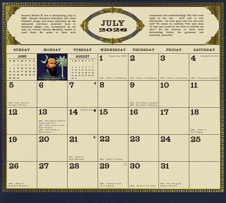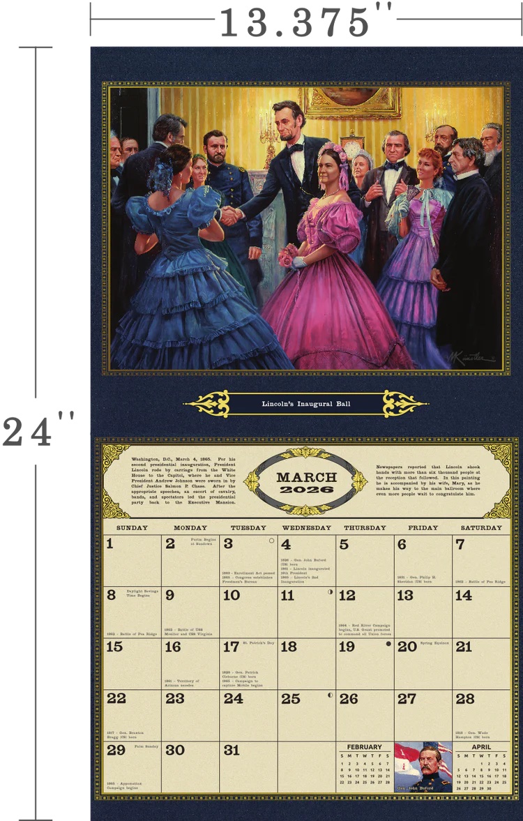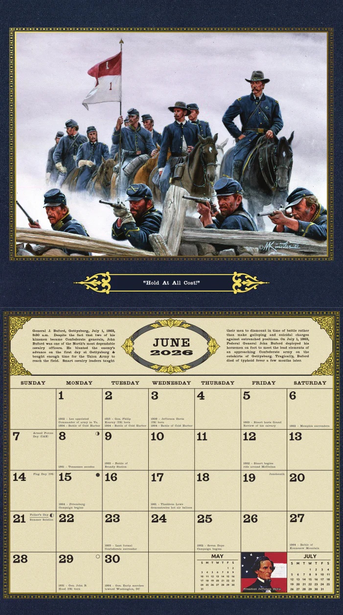 America’s favorite Civil War calendar is back featuring the art of Mort Künstler! The 2026 Civil War Wall Calendar depicts dramatic battles, important events, and key leaders from the Civil War each month!