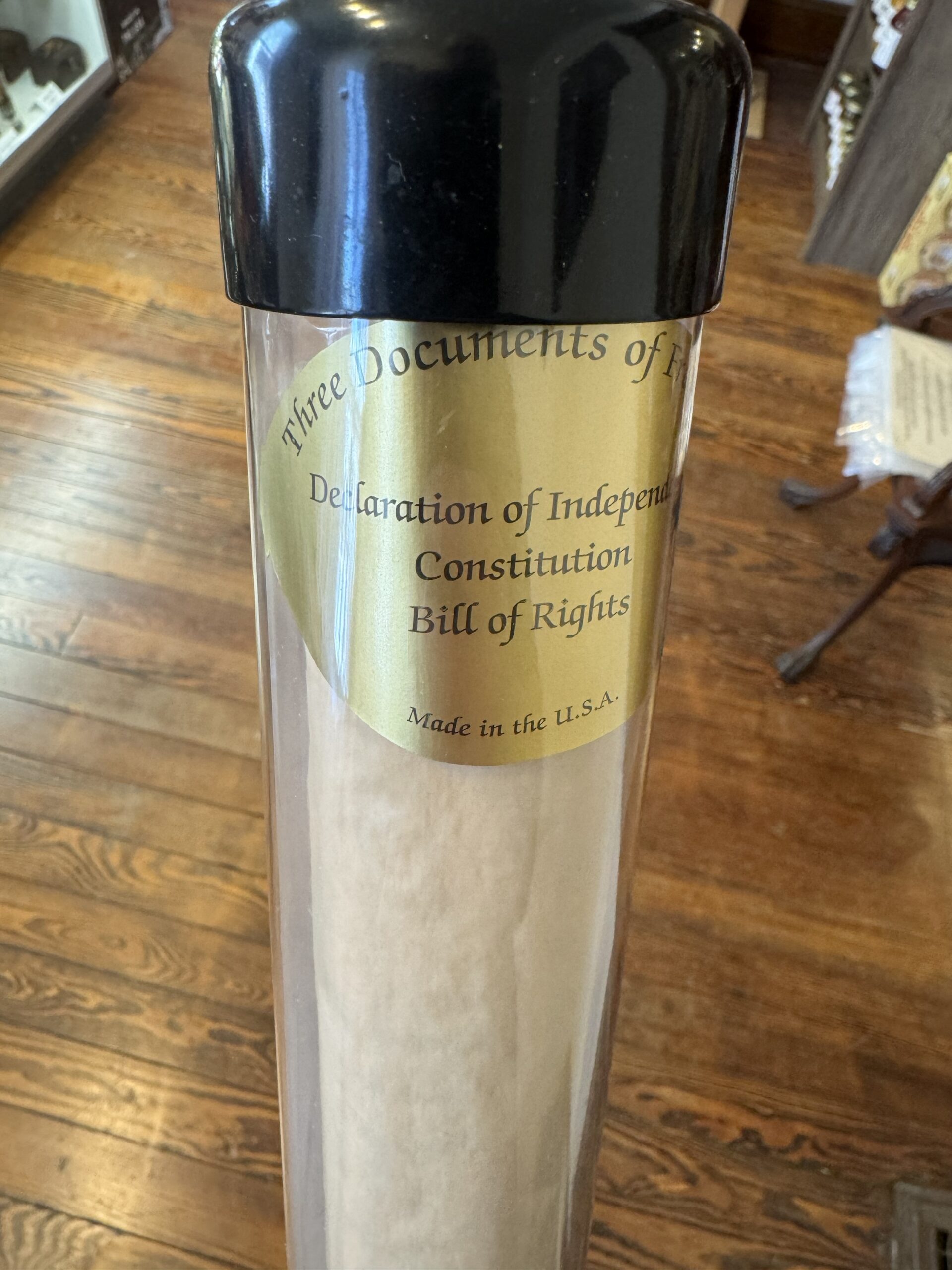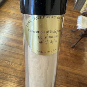 Includes: Declaration of Independence, U.S. Constitution and the Bill of Rights in a plastic tube