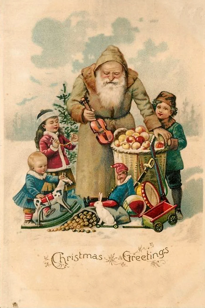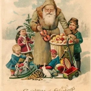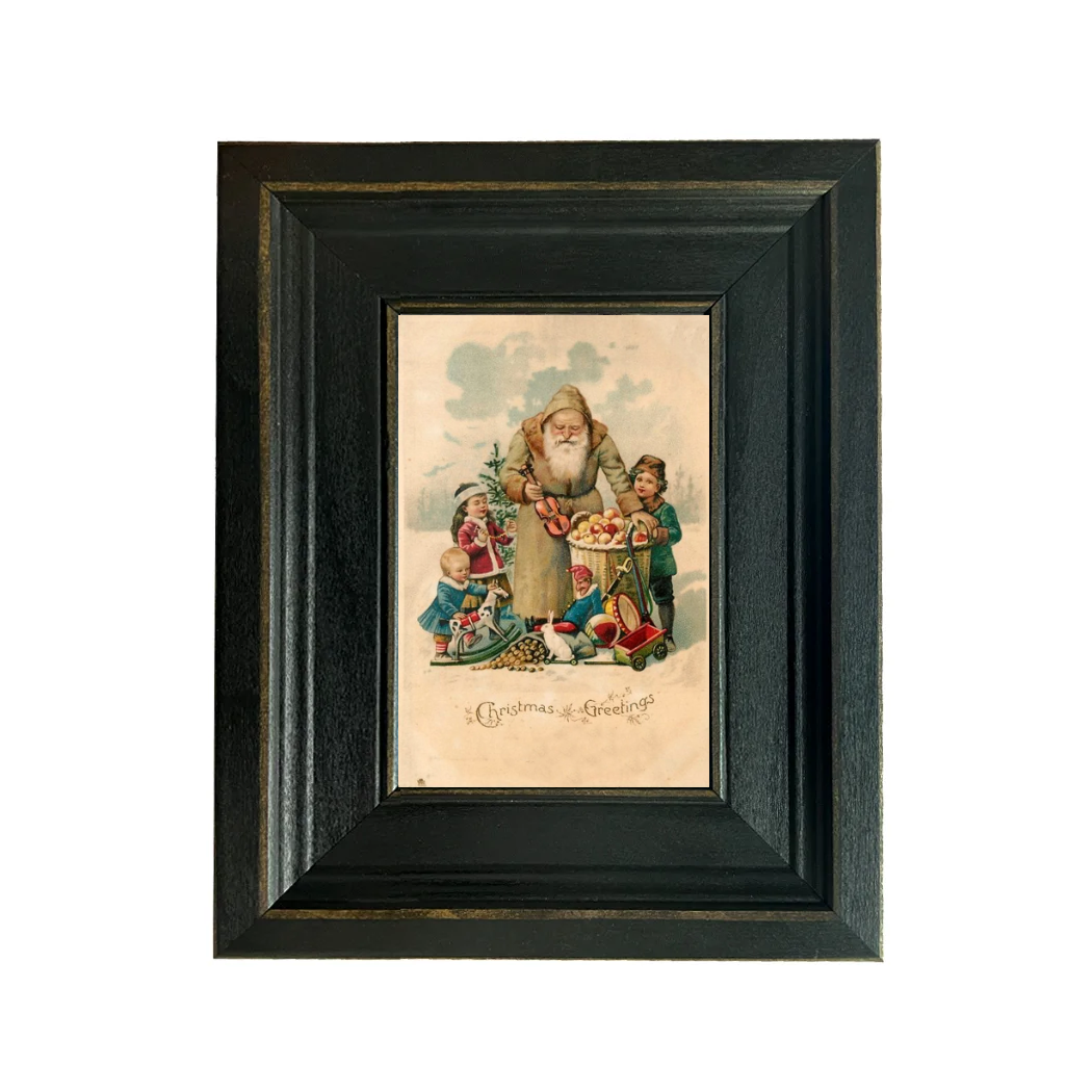 Featuring Victorian children opening gifts with Santa, this image is from an antique Christmas card. Combine it with other seasonal prints from our shop to build a Christmas gallery wall!
